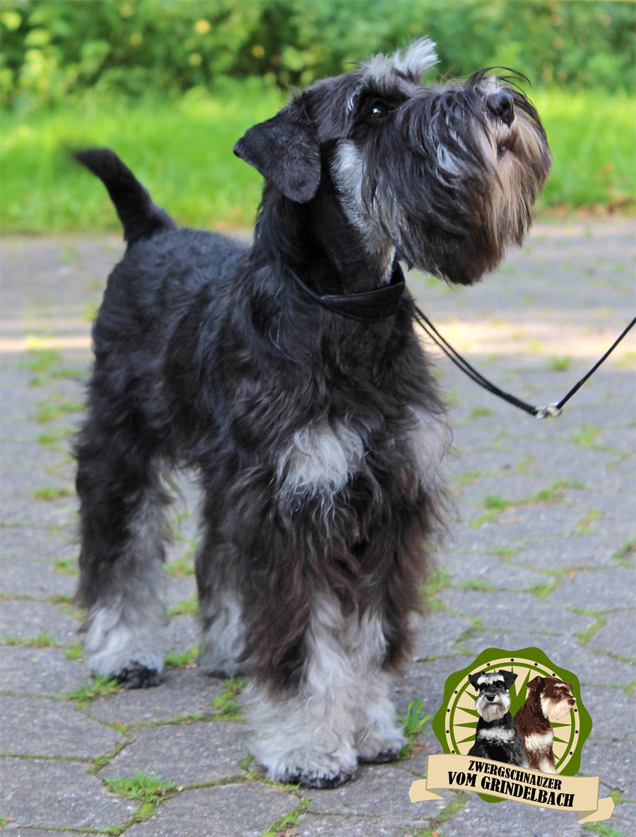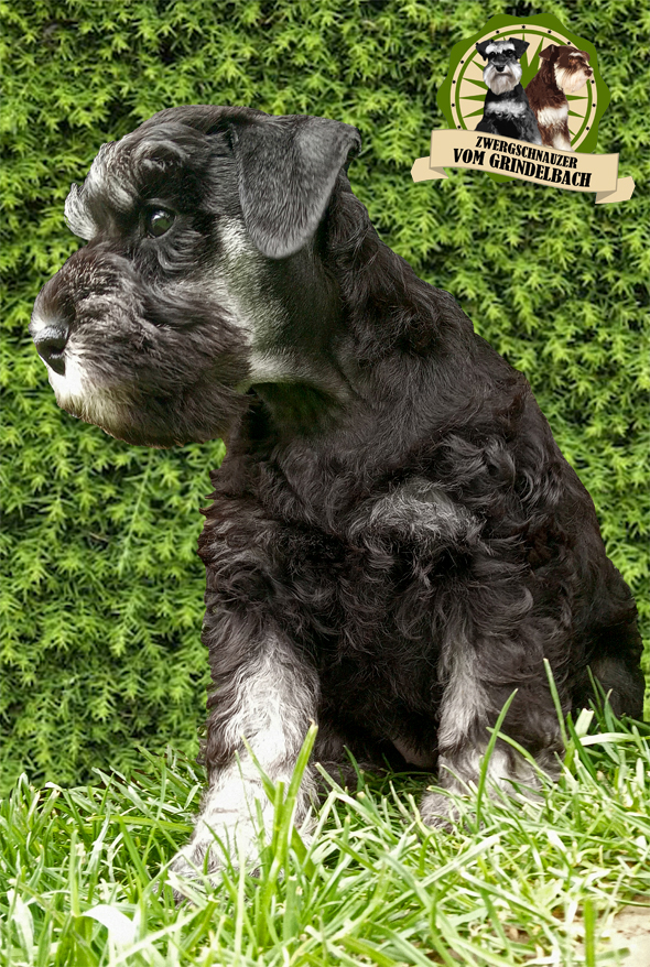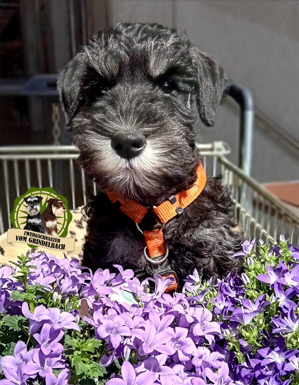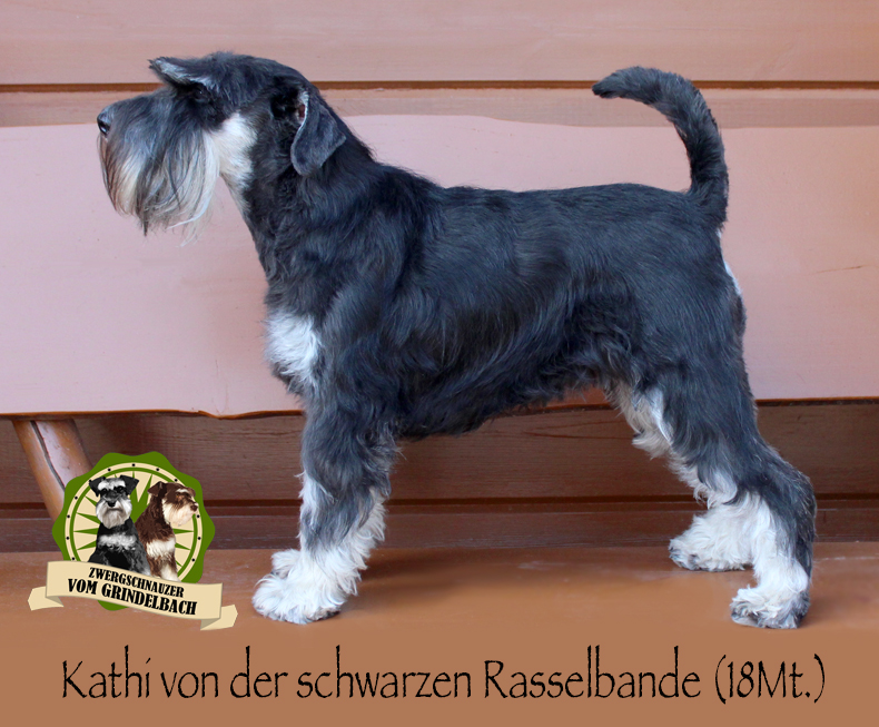 "Kathi von der schwarzen Rasselbande" ist unsere kleine Grosse. Sie ist eine in der Schweiz gezüchtete FCI Zwergschnauzerhündin. Am 31. Januar 2023 hat sie bei der Züchterin Barbara Gross-Lemke das Licht der Welt erblickt, zusammen mit 7 Geschwister. Kathi und ich teilen den gemeinsamen Geburtstag, was für mich natürlich etwas ganz besonderes ist. Kathi zeigt sich als unglaublich souveräne und selbstsichere Junghündin, die so schnell nicht aus der Ruhe zu bringen ist. Und sie ist extrem verschmust